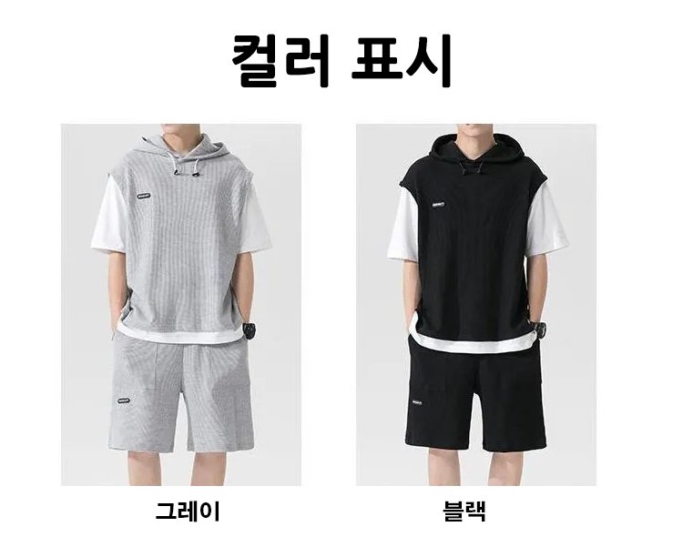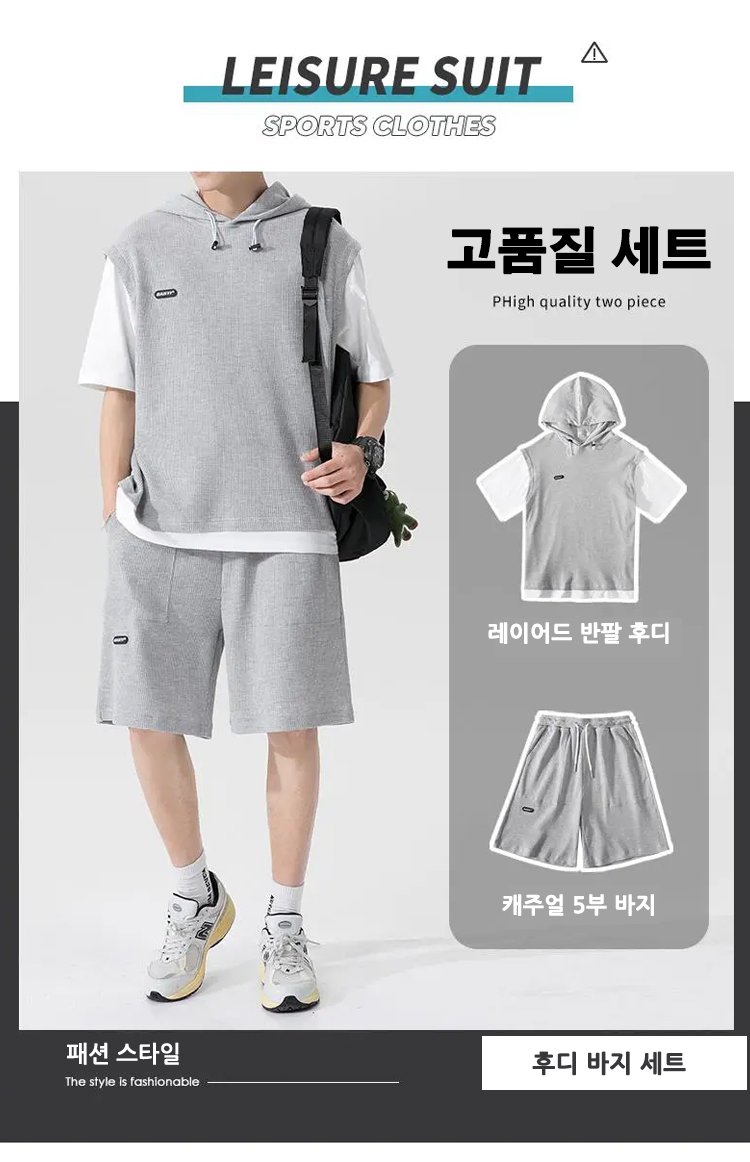 시원한 남자 레이어드 와플 패턴 캐주얼 세트